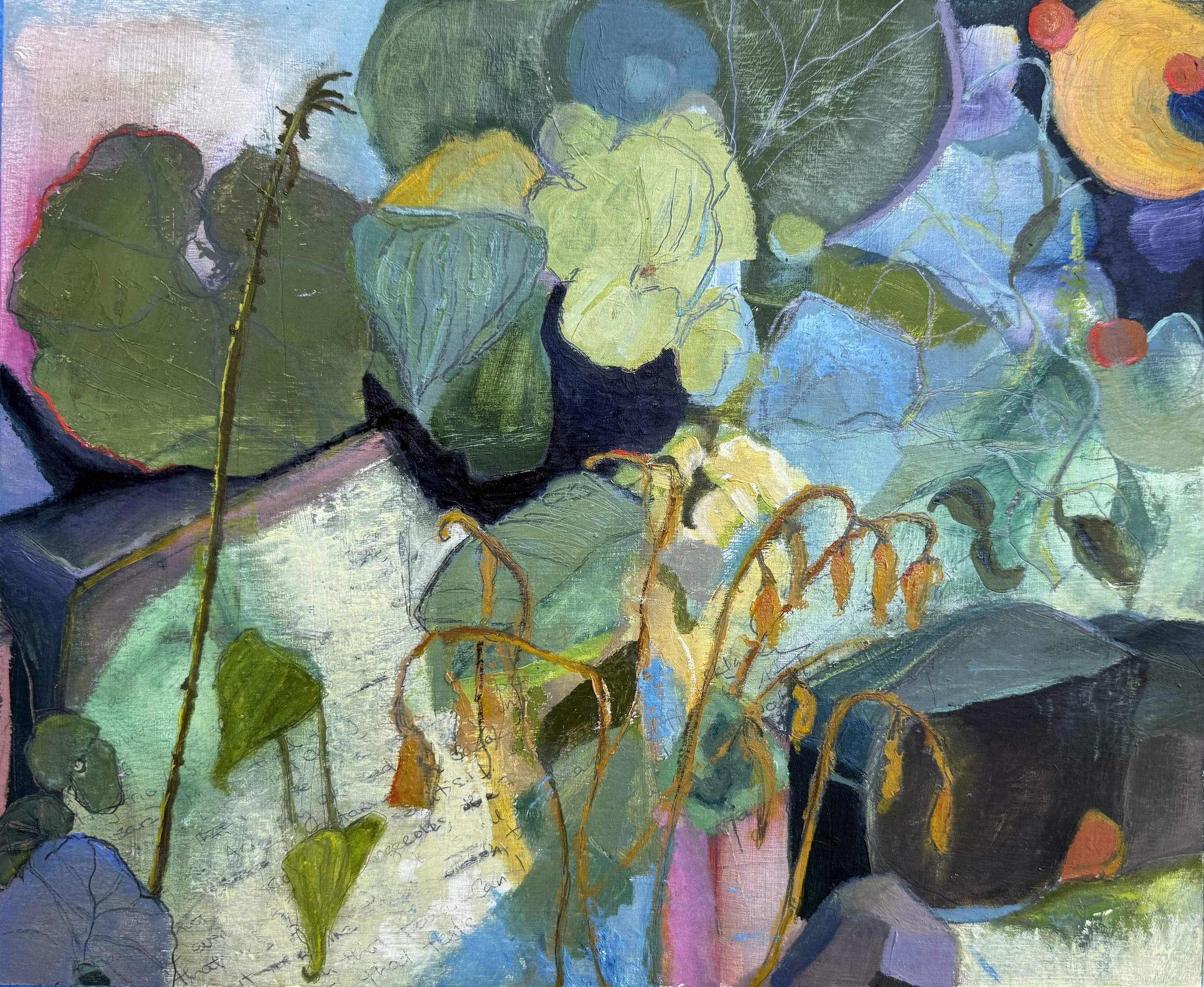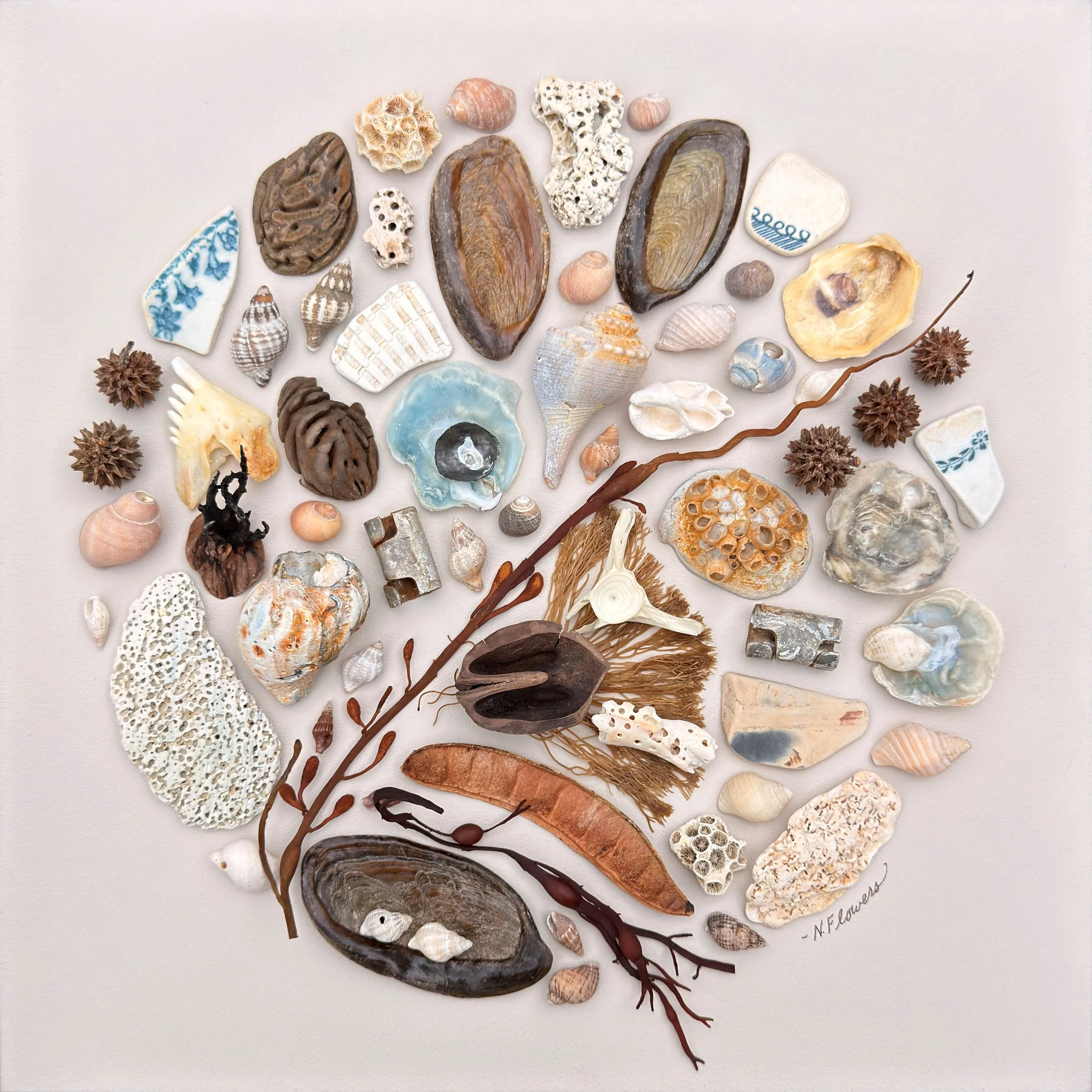 She observed: “Nature is where I find the peacefulness and inspiration for my work.” She took photographs, and gathered and collected small plant life, from seeds to worn leaves, stating, “I offer the viewer traces, remnants, shadows, shards and inferences—an appreciation of the botanical life around us.”
